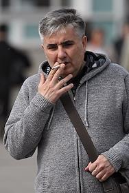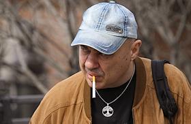 Жанровая фотография. Мужчина курит сигарету на улице.