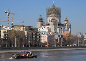 Жанровая фотография. Виды Москвы. Москва-река. Строительные леса на куполе храма Христа Спасителя.