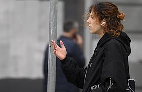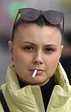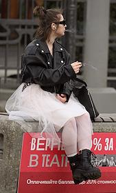 Жанровая фотография. Девушка курит сигарету на улице.
