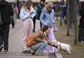 Жанровая фотография. Женщина во время прогулки с собакой.