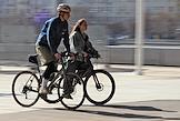 Жанровая фотография. Молодые люди катаются на велосипедах по улице города.