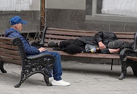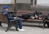 Жанровая фотография. Мужчины на лавочках в сквере.