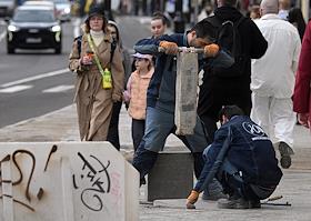 Виды Москвы во время снегопада. Жанровая фотография. Пост дорожно-патрульной службы (ДПС) у Павелецкого вокзала.