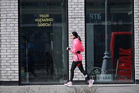 Жанровая фотография. Девушка во время пробежки на фоне надписи "Твоя курилка здесь!".