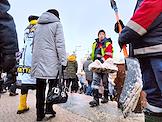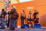 Виды новогодней Москвы. Жанровая фотография. Рабочие у площадки фестиваля "Зима в Москве" на Арбате.