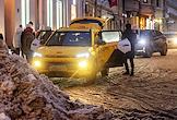 Виды новогодней Москвы. Жанровая фотография. Пассажиры во время посадки в такси.
