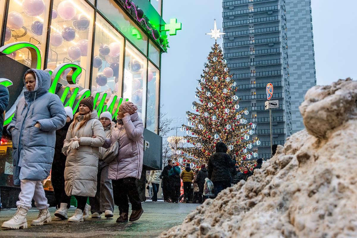 Виды новогодней Москвы. Жанровая фотография. Елка на улице Новый Арбат.