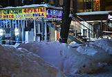 Виды Москвы. Жанровая фотография. Торговый павильон среди снежных сугробов.