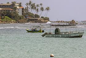 Виды Шри-Ланки. Жанровая фотография. Отдыхающие купаются в море.