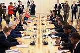 Переговоры министра иностранных дел России Сергея Лаврова с министром международных отношений и торговли Намибии Сельмой Ашипалой-Мусавьи в Доме приемов МИД России. Министр иностранных дел России Сергей Лавров (в центре) во время переговоров.