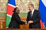 Переговоры министра иностранных дел России Сергея Лаврова с министром международных отношений и торговли Намибии Сельмой Ашипалой-Мусавьи в Доме приемов МИД России. Министр иностранных дел России Сергей Лавров (справа) и министр международных отношений и торговли Намибии Сельма Ашипала-Мусавьи (слева) после пресс-конференции по итогам переговоров.