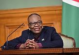 Переговоры министра иностранных дел России Сергея Лаврова с министром международных отношений и торговли Намибии Сельмой Ашипалой-Мусавьи в Доме приемов МИД России. Министр иностранных дел России Сергей Лавров (справа) и министр международных отношений и торговли Намибии Сельма Ашипала-Мусавьи (слева) во время пресс-конференции по итогам переговоров.