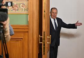 Переговоры министра иностранных дел России Сергея Лаврова с министром международных отношений и торговли Намибии Сельмой Ашипалой-Мусавьи в Доме приемов МИД России. Министр иностранных дел России Сергей Лавров перед началом переговоров.