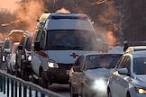 Жанровая фотография. Автомобиль скорой медицинской помощи в автомобильном потоке на трассе города.