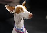 Выставка собак "Евразия 2025" в Международном выставочном центре (МВЦ) "Крокус Экспо". Собака породы поденко ибиценко (ивисская борзая, ибизан).