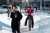 Жанровая фотография. Девушка на улице в морозную погоду.