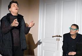 Презентация аудиоверсии книги журналиста ИД "Коммерсантъ" Екатерины Истоминой "Пионерское время" в доме-музее Станиславского. Руководитель группы иностранной информации Николай Зубов (справа) и издатель Андрей Ирбит (второй слева) во время презентации.
