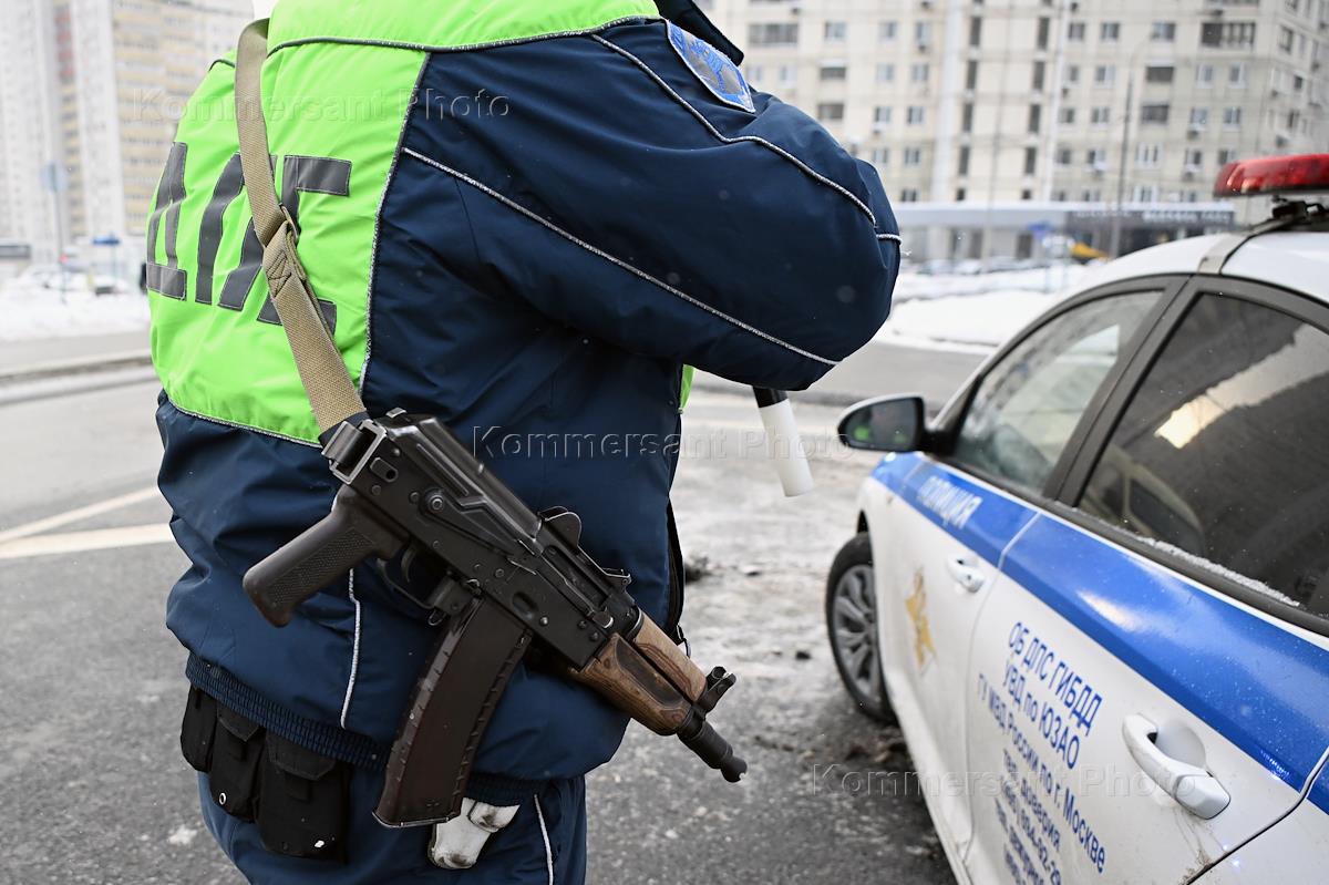 Рейд сотрудников ГИБДД по контролю за велокурьерами в Юго-Западном округе. Жанровая фотография. Cотрудник дорожно-патрульной службы во время рейда.