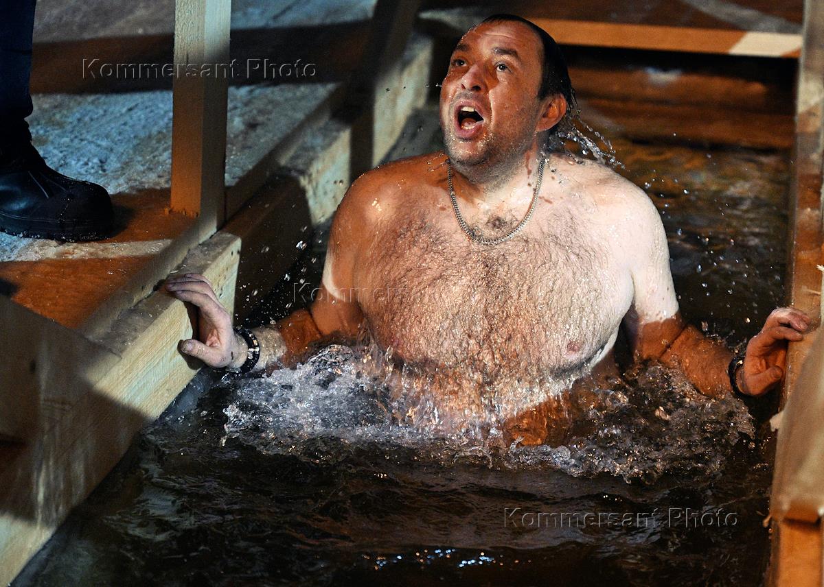 Праздник Крещения Господня (Богоявления). Верующие в проруби на Мещёрском пруду.