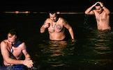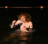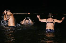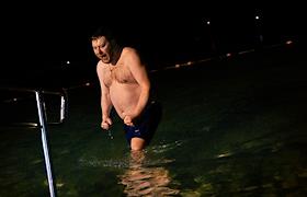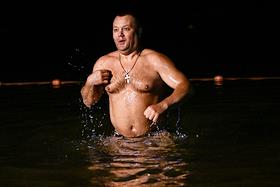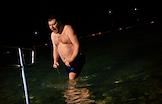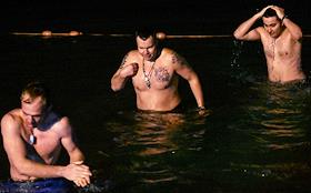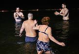 Праздник Крещения Господня (Богоявления).Верующие во время крещенских купаний в Черном море на пляже города.