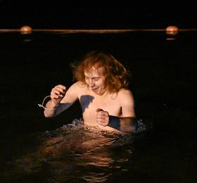 Праздник Крещения Господня (Богоявления). Верующие во время крещенских купаний в Черном море на пляже города.