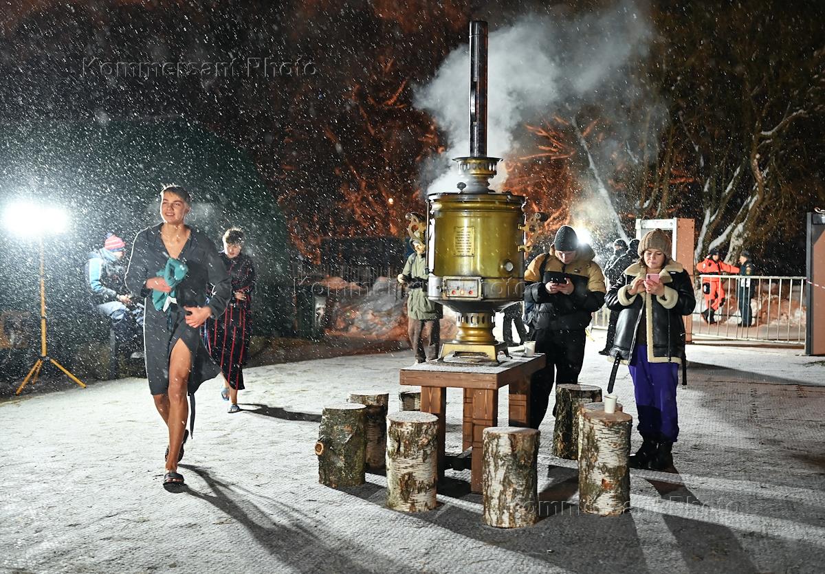 Праздник Крещения Господня (Богоявления). Верующие во время крещенских купаний в парке Покровское-Стрешнево.
