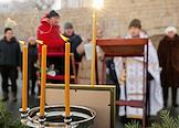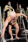 Праздник Крещения Господня (Богоявления). Крещенские купания на реке Волге. Священнослужитель во время чина освящения воды.