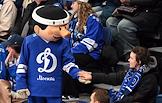Континентальная Хоккейная Лига (КХЛ). Матч между командами "Динамо" (Москва) - "Динамо Минск" (Минск) на стадионе "ВТБ Арена" имени Аркадия Чернышёва. Талисман Хоккейного клуба "Динамо" (Москва) Динамчик на зрительской трибуне.