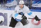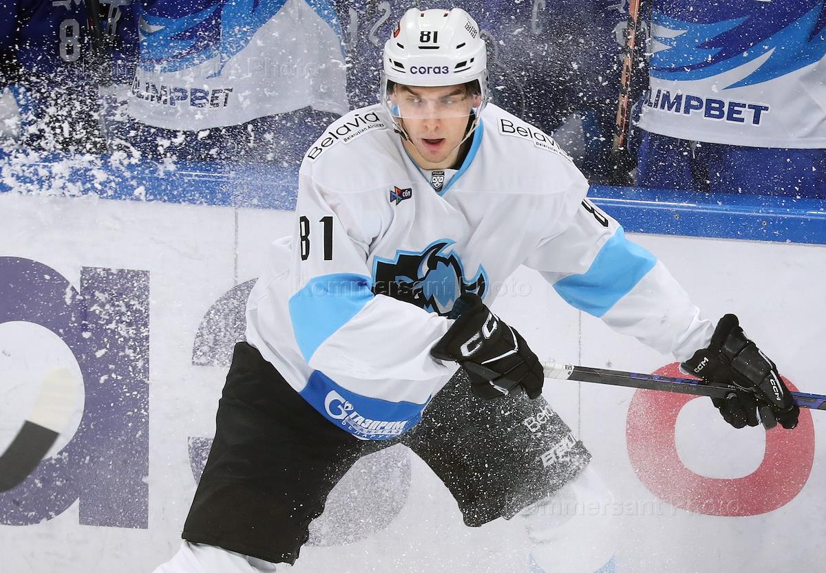 Континентальная Хоккейная Лига (КХЛ). Матч между командами "Динамо" (Москва) - "Динамо Минск" (Минск) на стадионе "ВТБ Арена". Игрок команды "Динамо Минск" Виталий Пинчук во время матча.