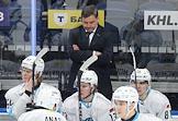 Континентальная Хоккейная Лига (КХЛ). Матч между командами "Динамо" (Москва) - "Динамо Минск" (Минск) на стадионе "ВТБ Арена". Главный тренер команды "Динамо Минск" Дмитрий Квартальнов (в центре) во время матча.