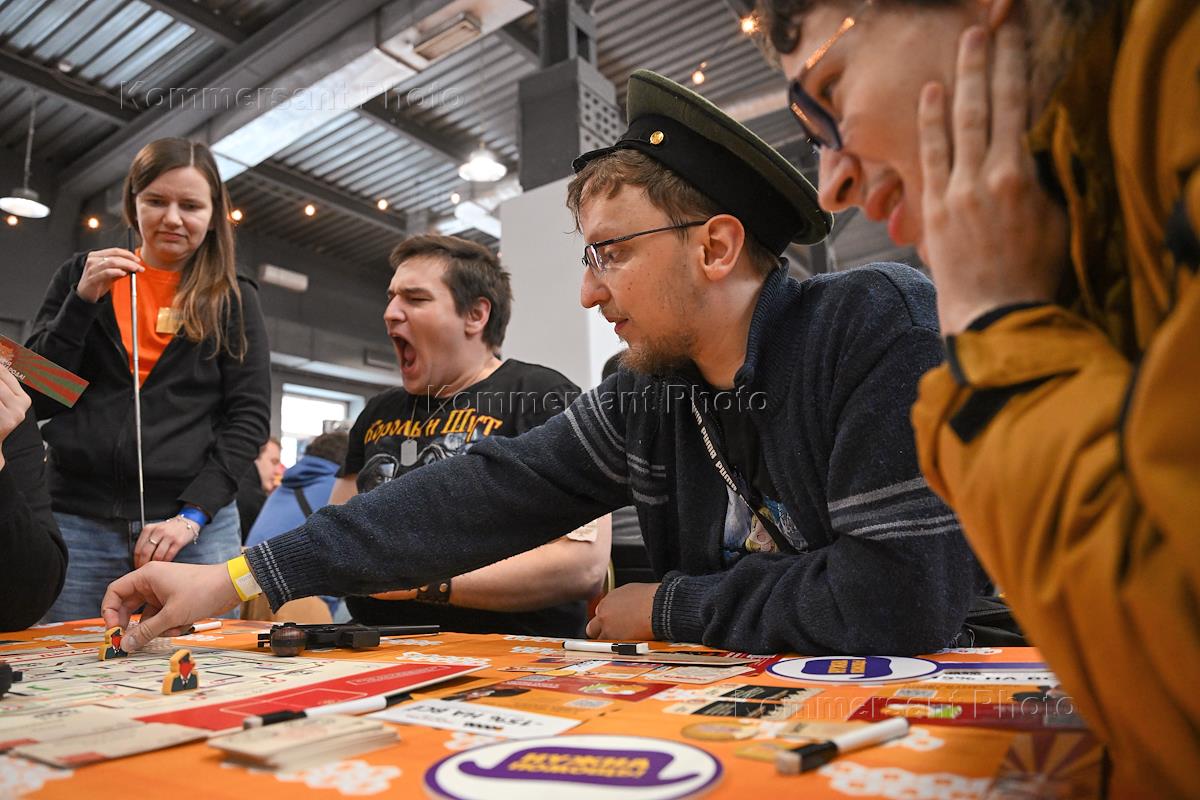 Фестиваль игр и увлечений "Игрокон Lite" в event-hall "Даниловский". Жанровая фотография. Участники фестиваля во время настольных игр.