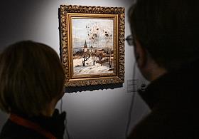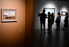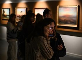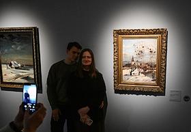 Выставка "Саврасов и тишина", приуроченная к 195-летию со дня рождения художника Алексея Саврасова, в музее "Новый Иерусалим". Посетители на выставке.