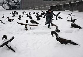 Виды Истры. Музей "Новый Иерусалим". Жанровая фотография. Ребенок играет у скульптурной группы во дворе музея.