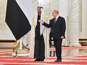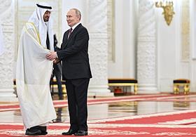 Переговоры президента России Владимира Путина с президентом Объединенных Арабских Эмиратов (ОАЭ) Мухаммедом Бен Заидом Аль Нахайяном в Большом Кремлевском дворце.