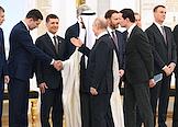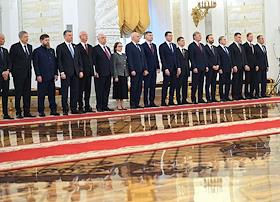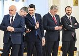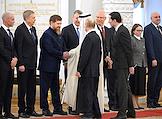 Переговоры президента России Владимира Путина с президентом Объединенных Арабских Эмиратов (ОАЭ) Мухаммедом Бен Заидом Аль Нахайяном в Большом Кремлевском дворце. Участники российской делегации на церемонии официальной встречи перед началом переговоров.