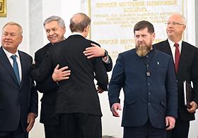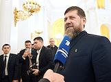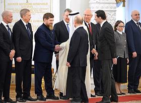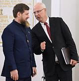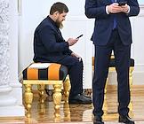 Переговоры президента России Владимира Путина с президентом Объединенных Арабских Эмиратов (ОАЭ) Мухаммедом Бен Заидом Аль Нахайяном в Большом Кремлевском дворце. Глава Чеченской Республики Рамзан Кадыров перед началом переговоров.