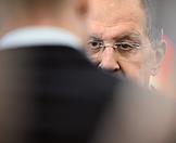 Переговоры президента России Владимира Путина с президентом Объединенных Арабских Эмиратов (ОАЭ) Мухаммедом Бен Заидом Аль Нахайяном в Большом Кремлевском дворце. Министр иностранных дел России Сергей Лавров перед началом переговоров.