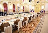 Переговоры президента России Владимира Путина с президентом Объединенных Арабских Эмиратов (ОАЭ) Мухаммедом Бен Заидом Аль Нахайяном в Большом Кремлевском дворце. Жанровая фотография. Подготовка к переговорам.