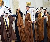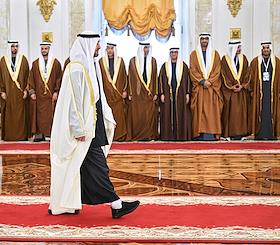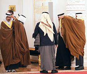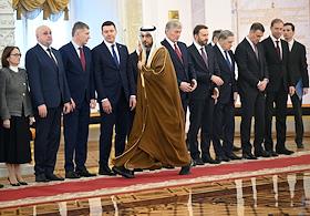 Переговоры президента России Владимира Путина с президентом Объединенных Арабских Эмиратов (ОАЭ) Мухаммедом Бен Заидом Аль Нахайяном в Большом Кремлевском дворце. Члены делегации ОАЭ перед началом переговоров.