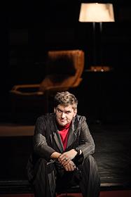 Премьера спектакля "Имя" французских драматургов Александра де ла Пательера и Матьё Делапорта в постановке режиссеров Сергея Кальварского и Натальи Капустиной в Театре эстрады. Актер Александр Семчев во время спектакля.