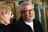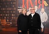 Премьера спектакля "Имя" французских драматургов Александра де ла Пательера и Матьё Делапорта в постановке режиссеров Сергея Кальварского и Натальи Капустиной в Театре эстрады. Режиссеры Сергей Кальварский и Наталья Капустина на премьере.