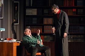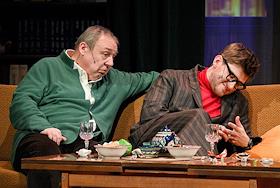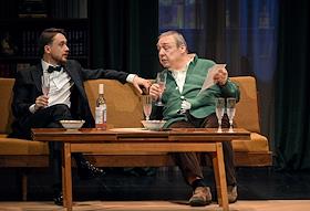 Премьера спектакля "Имя" французских драматургов Александра де ла Пательера и Матьё Делапорта в постановке режиссеров Сергея Кальварского и Натальи Капустиной в Театре эстрады. Актеры Александр Семчев (слева) и Андрей Максимов во время спектакля.