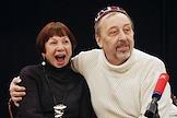 Актриса Тамара Зимина (слева) и драматург, директор и художественный руководитель "Коляда-Театра" (Екатеринбург) Николай Коляда (справа) во время пресс-конференции, посвященной гастролям театра, в Театральном центре "На Страстном".