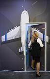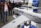 XIII Национальный авиационный инфраструктурный салон НАИС-2026 в Международном выставочном центре "Крокус Экспо". Выставка инфраструктуры гражданской авиации. Жанровая фотография. Посетители выставки у макета самолета ТУ-214.
