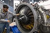 XIII Национальный авиационный инфраструктурный салон НАИС-2026 в Международном выставочном центре "Крокус Экспо". Выставка инфраструктуры гражданской авиации. Жанровая фотография. Стенд Объединенной двигателестроительной корпорации (ОДК). Трубовентиляторный двухконтурный двигатель со смешенным потоком контуров ПД-8.