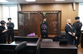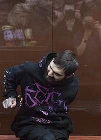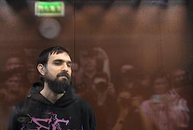 Оглашение приговора стендап-комику Артемию Останину, обвиняемому по делу о разжигании ненависти, в Мещанском районном суде. Стендап-комик Артемий Останин (слева) во время заседания суда.