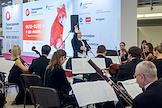 Церемония открытия фотовыставки в рамках XIII Общероссийского фестиваля природы "Первозданная Россия" 2026 года в Центральном выставочном зале "Манеж". Музыканты оркестра на церемонии.