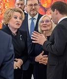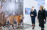 Церемония открытия фотовыставки в рамках XIII Общероссийского фестиваля природы "Первозданная Россия" 2026 года в Центральном выставочном зале "Манеж". Председатель Совета Федерации России Валентина Матвиенко (справа) на церемонии.