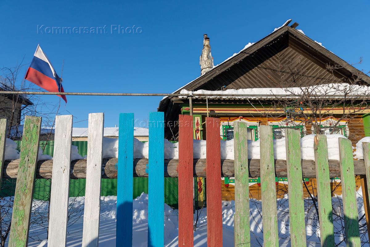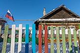 Виды Белоярского городского округа. Забор, окрашенный в цвета российского триколора.