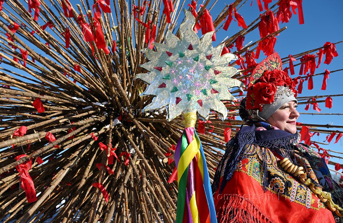 Празднование Масленицы в арт-парке "Никола-Ленивец". Участница празднования. Жанровая фотография.